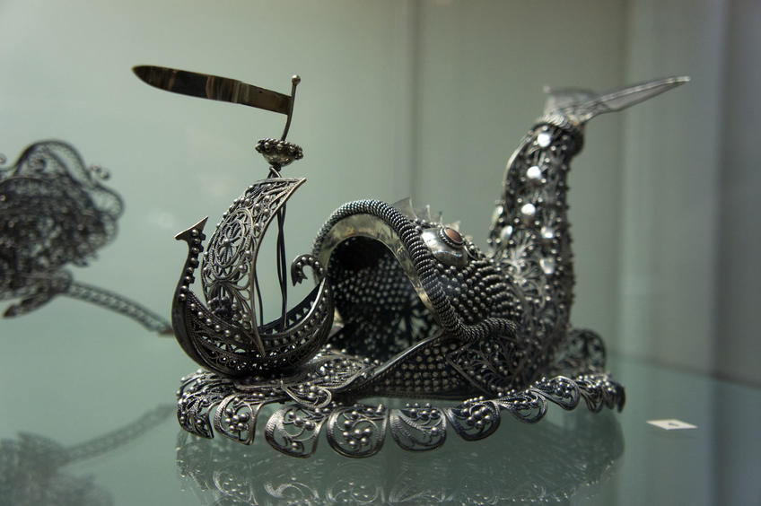 Т.М.— Каждый раз по-разному. Не знаю откуда. Для этого нужно хорошее настроение, или настроение повышенной эмоциональности. В свободном состоянии, когда сыт и доволен, вдохновение не приходит. Настоящие идеи приходят не часто, как и шедевры. В основном мы занимаемся повседневной работой, "массовкой": колечки, сережки. Сувенир берешь, тогда когда сам просишь такое задание. Уже в голове все сложилось и хочется выполнить. Например, Кул Шариф получился так. Когда я впервые была в Казани, шел период строительства мечети Кул Шариф. Были построены только стены. Но и тогда мечеть уже была такой красивой, я больше никогда не видела таких сооружений. Как будто инопланетный корабль приземлился сюда. Его нельзя было не сделать. Этим нельзя не вдохновиться. Сразу представила как она будет в металле, это профессиональный взгляд на вещи. С коллегами мы переживали очень, потому что с культурой не знакомы, могли что-то не угадать, перепутать и обидеть. К работе подошли ответственно.