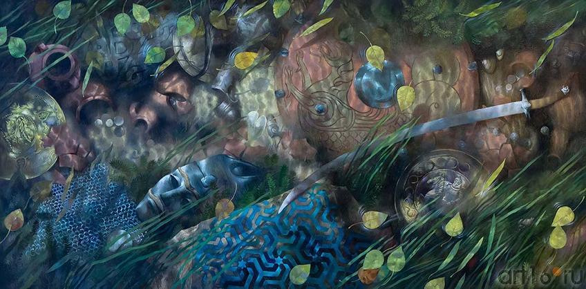 Фото №103223. Art16.ru Photo archiveСам художник, Гильфанов Фирдаус Гильмутдинович о «Шан кызы» на открытии выставки заметил: «Я перечитывал этот дастан несколько раз. И с каждым прочтением я в нем нахожу какие-то новые идеи, замыслы. Это замечательная книга. С одного раза ее не поймешь. Это пища для ума художников и творческих людей».