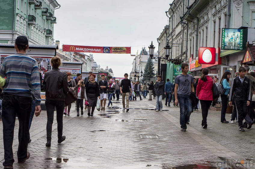 Фото №112945. Art16.ru Photo archiveО празднике на улице Баумана ничего не напоминало. Обычный будний день. Туристы и горожане, редко выбирающиеся в центр города, фотографировались у замечательных фонтанов («Водяная», «Голуби», «Лягушки»). Как всегда, у кареты можно было запечатлеть себя с живыми голубями. На этом, пожалуй, экскурсию по ул. Баумана можно завершить.