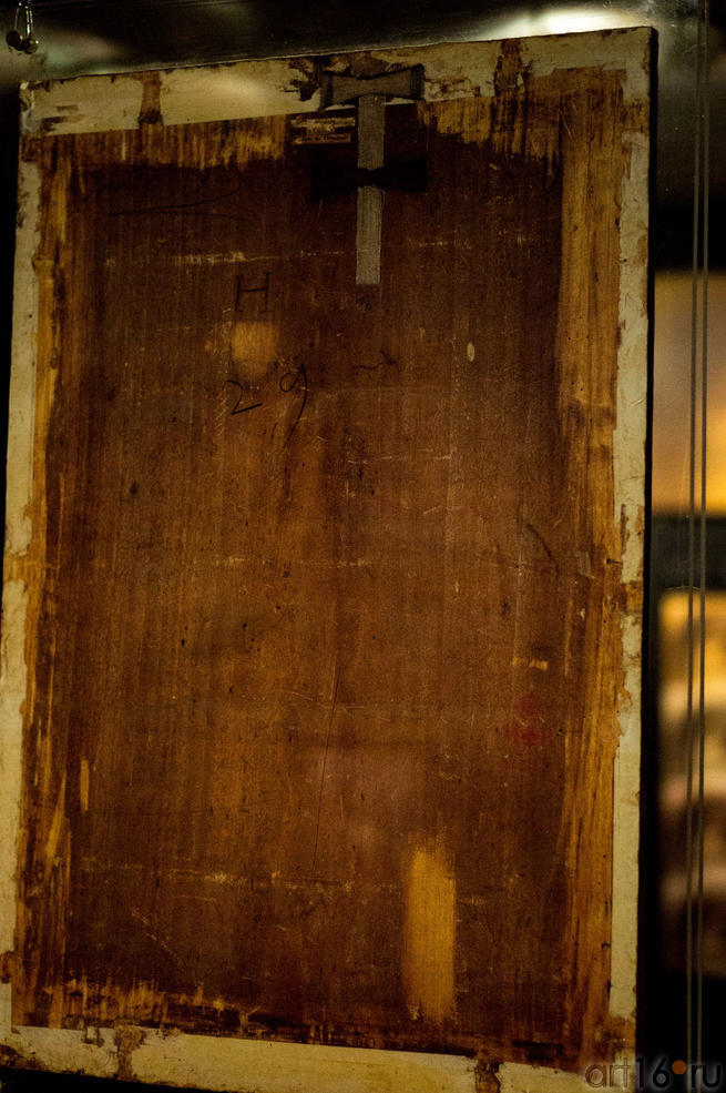 На выставке «Гений да Винчи» мы можем посмотреть на картину сбоку и с задней стороны.