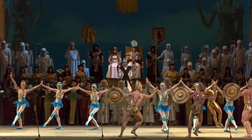 Фото №783436. Art16.ru Photo archiveВ опере «Аида» драма двух любящих сердец развивается на ярком патетическом фоне монументальных массовых сцен, пышных шествий, танцев и гимнов.
