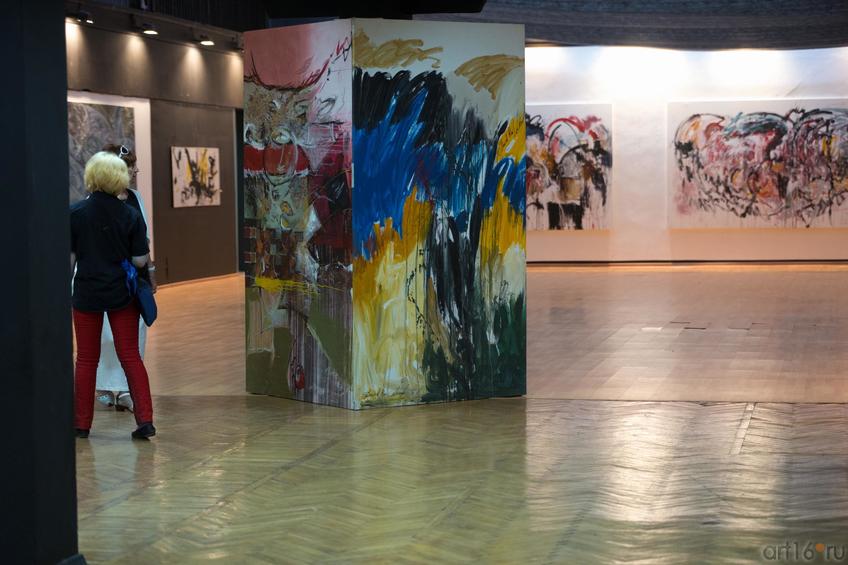 Фото №891559. Art16.ru Photo archiveЗвучание современной электронной музыки, сопровождаемое визуальным рядом на экране в ГСИ - это один из специальных проектов I Международного фестиваля «Абстракция без границ» (22.06.2016 - 01.09.2016). Фестиваль интерактивный и живой. Начавшийся с открытия выставки абстрактной живописи, экспонентами в которой выступили 26 художников из 16 стран мира, продолжился целым рядом интересных и познавательных мероприятий. Во время открытия выставки художник на глазах посетителей создал две абстрактные работы внушительных размеров.