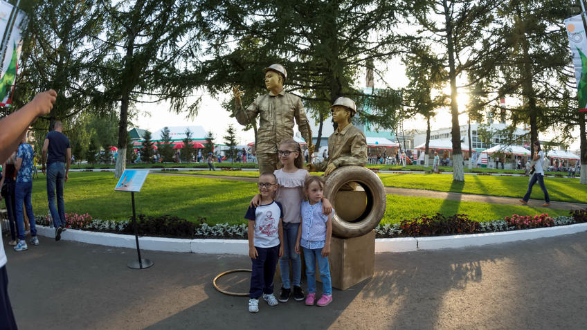 Фото №934094. Альметьевск, День города, 02.09.2017Следующим этапом стало согласование концепции с экспертным советом. Экспертный совет пилотного проекта паблик-арта “Сказки о золотых яблоках” представили: инициатор проекта генеральный директор компании «Татнефть» Наиль Маганов, глава района Айрат Хайруллин, директор Государственного музея изобразительных искусств республики Розалия Нургалеева, почетный гражданин Альметьевского муниципального района Леокадия Садчикова, почётный ветеран ПАО «Татнефть» Рашад Фаткуллин, начальник Управления архитектуры и градостроительства г. Альметьевск Альфия Маненкова, начальник управления культуры г.Альметьевск Гузель Пайдуллина, руководитель пресс-службы компании «Татнефть» Нурия Валеева, международные эксперты в области паблик-арта.