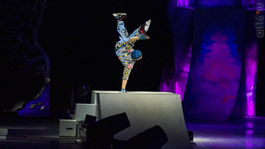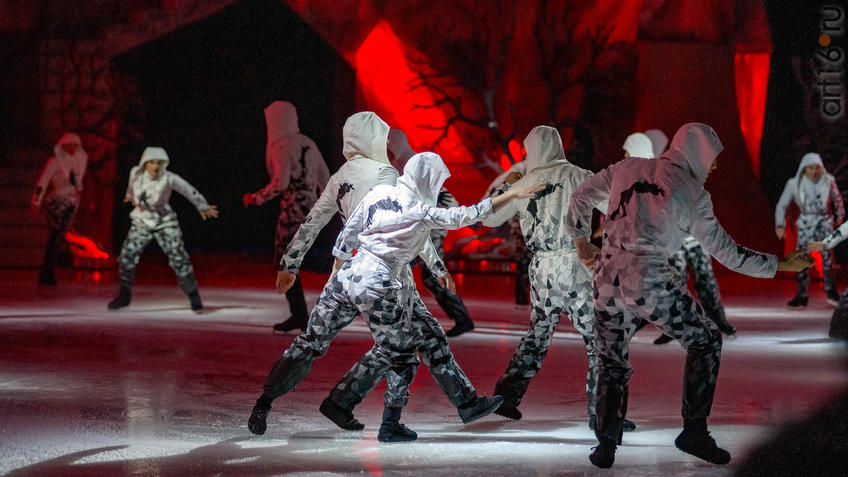 Фото №966514. Art16.ru Photo archive«Воздушное па-де-де на ремнях» — ещё один пример соединения льда и акробатики в шоу: воздушный гимнаст на ремнях и фигуристка. Нереально красивый номер! Один из запомнившихся номеров шоу — эквилибр на стульях. Пирамида на стульях очень сложно строенная, ощущение, что вот-вот развалится. На ней артист делает различные стойки на руках. Техника у него просто сумасшедшая.