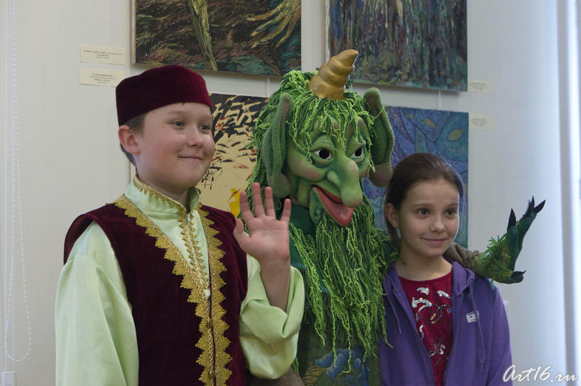 Фото №77919. Герои татарских сказок на открытии выставки "Шурале и Я"Также на выставке экспонируются более 300 произведений художников из разных городов России: Казани, Елабуги, Набережных Челнов, Москвы, Санкт-Петербурга, Уфы, Нефтекамска, Благовещенска, Омска. Выставка “Шурале и Я” очень жизнерадостна, скорее всего, потому что Шурале — это сказочный персонаж. А ведь мы, все родом из детства. В экспозиционном зале выставки состоялась беседа с одним из организаторов и авторов идеи проекта Василем Ханнановым.