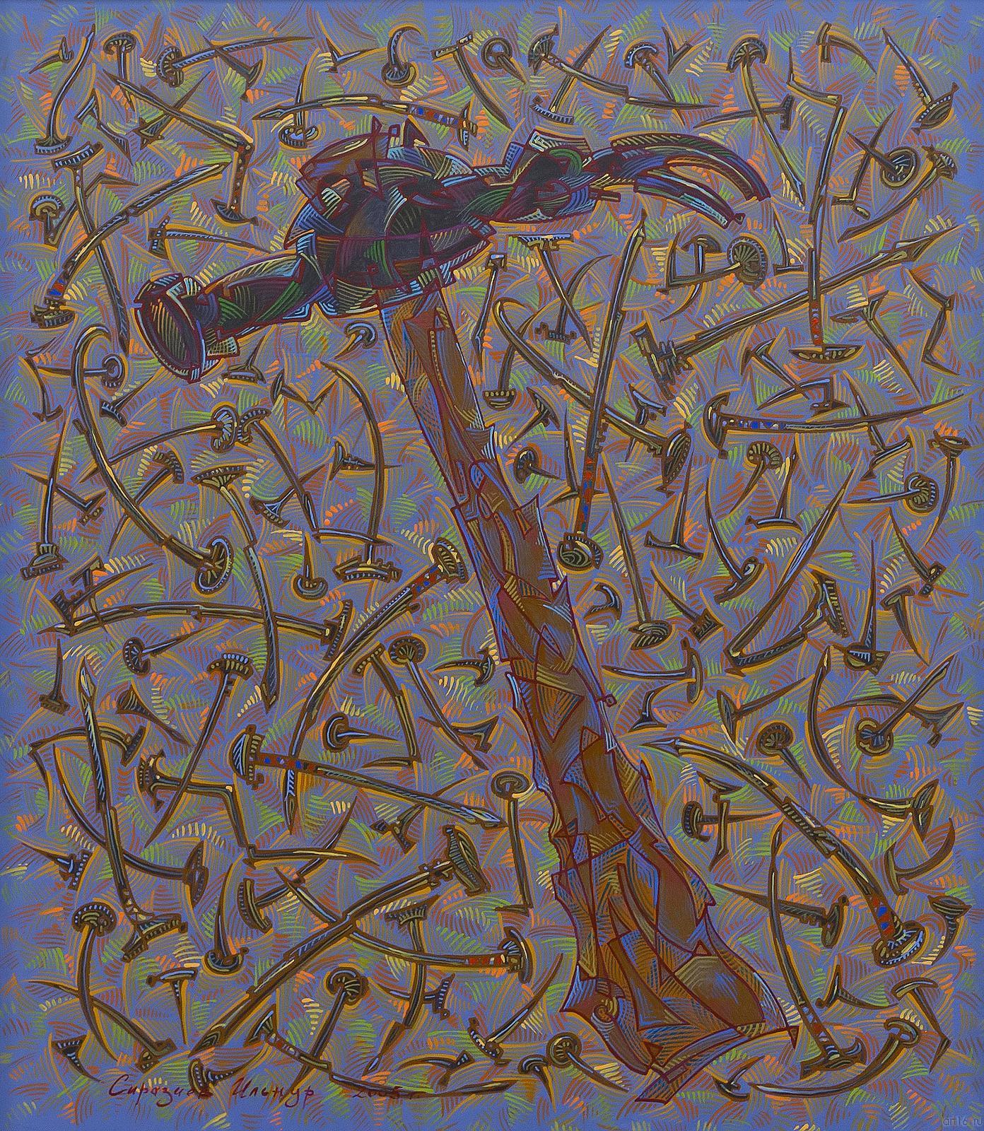 СИРАЗИЕВ И.И. 1970 МОЛОТОК И ГВОЗДИ. 2005 Фанера, левкас, акрил