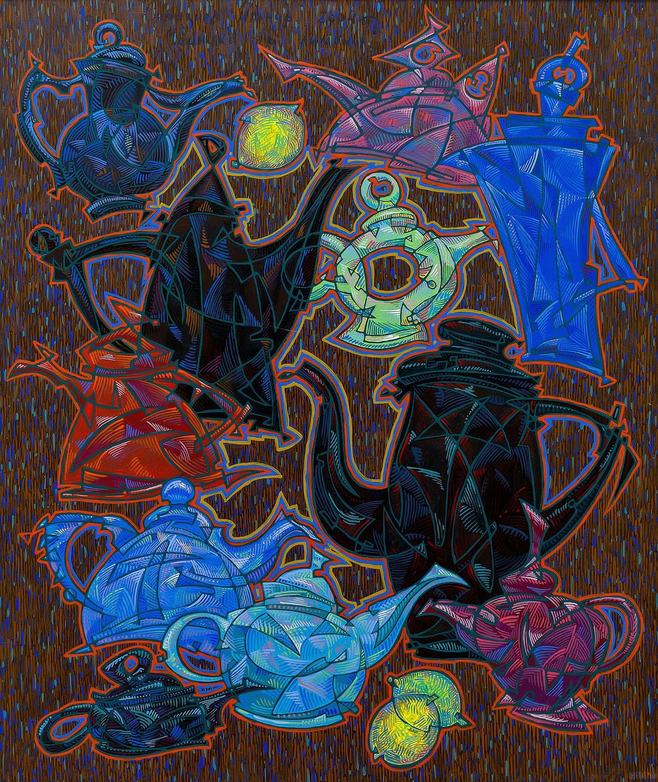 СИРАЗИЕВ И.И. 1970 ЧАЙНИКИ И ЛИМОНЫ. 2004 Фанера, левкас, акрил