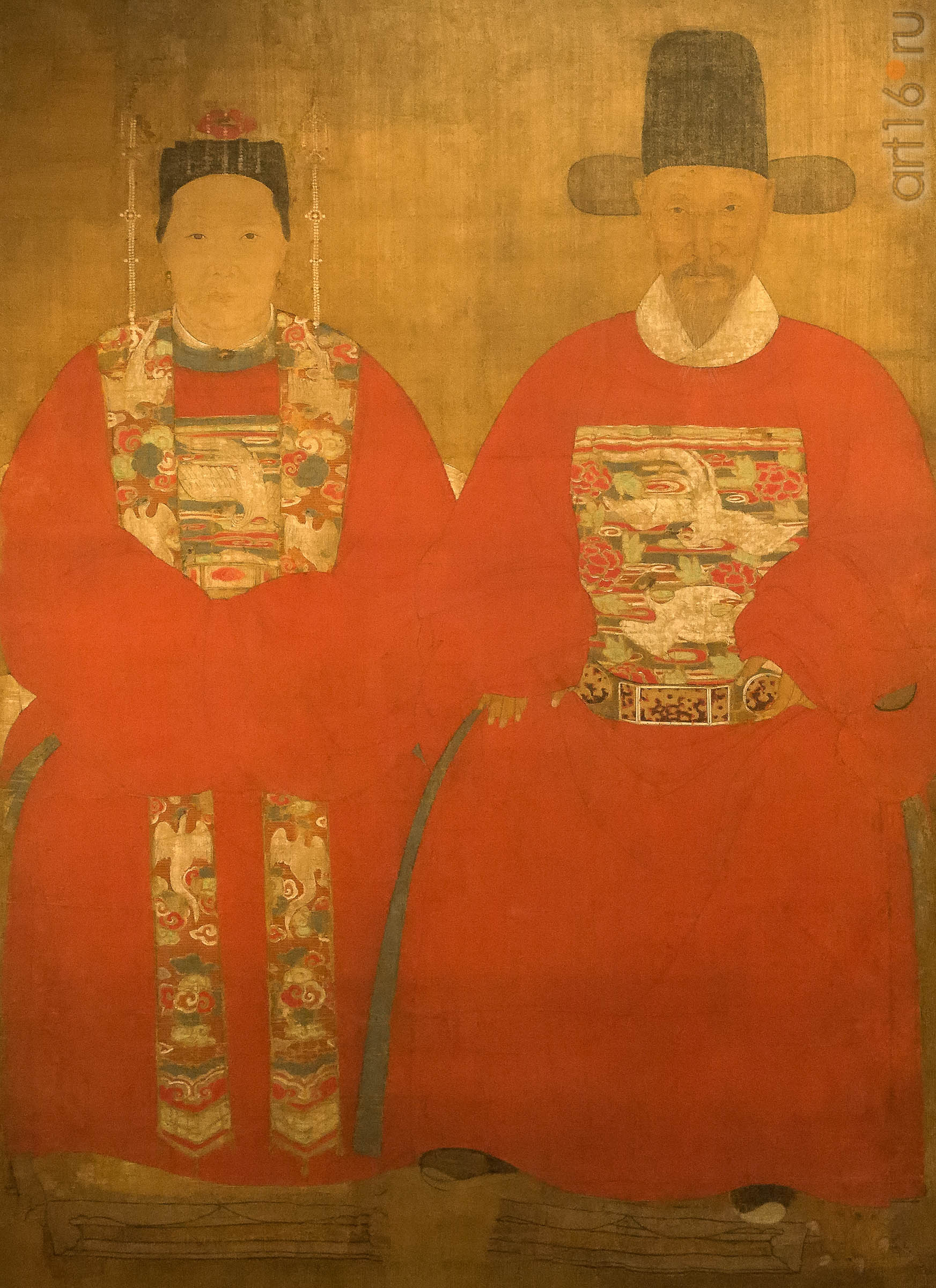 Неизвестный художник ПОРТРЕТ ЧИНОВНИКАС ЖЕНОЙ. Хатыны белэн тура портреты. Шелк, тушь, краски Китай XVI-XVII вв. Кат. N* 144