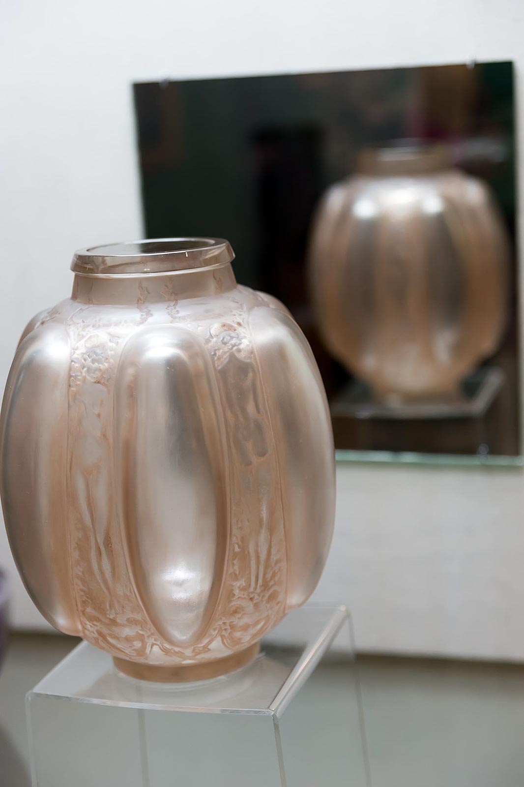 РЕНЕ ЛАЛИК 1860-1945 Ваза с шостью женскими фигурами. Модель около 1913 Прозрачно* коричневатое стекло, питье под дмпаиисм в фдаг, с заданный рисуыоы. матирсоам» шлифевм полироога