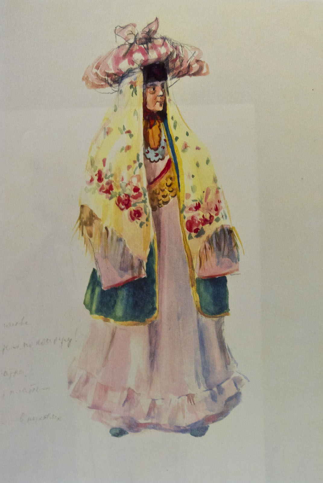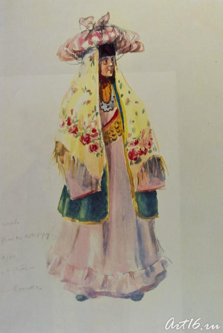 бумага, карандаш, акварель, белила; "Башмачки" музыкальная комедия в 3-х действиях Дж.Х.Файзи, либретто Т.Г.Гиззата;Художник-постановщик П.Т.Сперанский, художник по костюмам Л.Л.Сперанская-Штейн