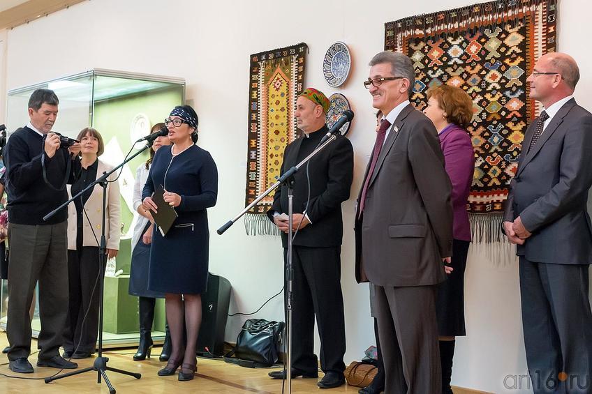 Президиум открытия выставки составили люди, сопричастные, участвующие в ее подготовке: Римма Ратникова, заместитель Председателя Государственного Совета Республики Татарстан, председатель Союза журналистов РТ; Наиль Валеев, доктор филологических наук, профессор, заслуженный деятель науки РТ, почетный работник высшего профессионального образования РФ, член Союза писателей РФ, действительный член Академии гуманитарных наук, член-корреспондент академии наук РТ. Атташе по культуре Генерального Консульства ИР Иран в Казани С. А. Маджид Шафази; Розалия Нургалеева, директор ГМИИ РТ; Рустем Сулейманов, руководитель Фонда поддержки и развития научных и культурных программ имени Ш. Марджани; коллекционер Низами Ибраимов; доктор искусствоведения Гузель Валеева-Сулейманова; Мамут Чурлу, художник, дизайнер.