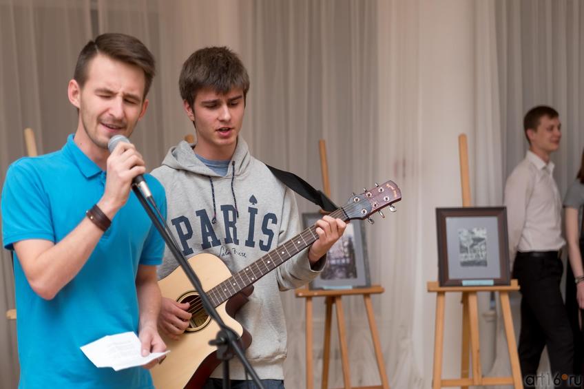Фото №886522. Ярослав Курашов (гитара) с другом "Как упоительны в России вечера"Заведующая Боратынкой Ирина Завьялова поздравила Владимира Курашова с удавшимся, блистательным проектом: