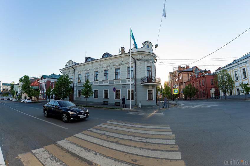 Фото №886854. Улица К.МарксаДелаем остановку у Дома Ремизовой. Сейчас в здании размещено Генеральное консульство Республики Казахстан в Казани. Дом построен в 1855 году в классическом стиле, обладает элементами модерна (ажурное кованое ограждение балкона). В доме частично сохранились интерьеры, парадная лестница. Архитектор Ф. И. Петонди.