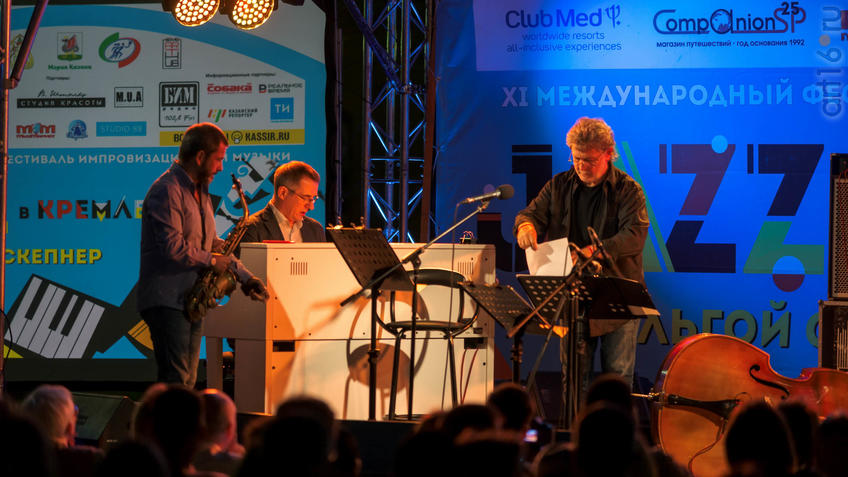 Фото №932666. Art16.ru Photo archiveВ джазовой интерпретации прозвучали композиции ЭнниоМорриконе, НиноРота из кинофильмов «Крёстный отец», «Однажды в Америке», «8 1/2», «Сладкая жизнь», «Дорога», «Новый кинотеатр «Парадизо», «Однажды на Диком Западе» и др. Программа для коллектива не нова. В феврале 2017 года квартет, практически, в том же составе выступил с программой «Музыка кино великих итальянских композиторов Ennio Morricone и Nino Rota в джазовых обработках» в Челябинске. Музыканты сыграны. Играли великолепно.