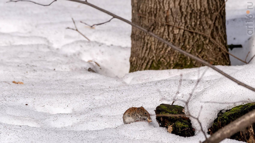 Кто это юркнул в сугроб? Лесная мышь. Она решает свои бытовые вопросы, ищет корм.