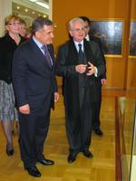 у витрины с экспонатами (шлем-бургиньот, нагрудник, шпага);Президент Республики Татарстан, доктор экономических наук (2003 год)/Директор Государственного Эрмитажа, член-корреспондент Российской академии наук, действительный член Российской академии...