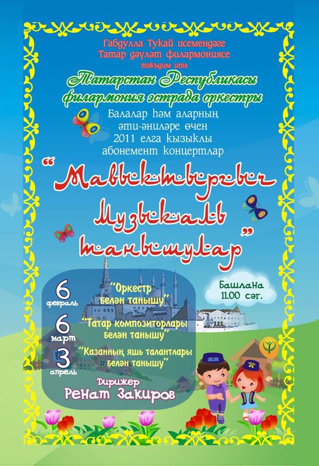 Фото №74340. «Интересные музыкальные знакомства» (на татарском языке)3 апреля - в 11.00 ч. - состоится завершающий абониментный концерт на татарском языке "Казанның яшь талантлары бэлән танышу" ("Музыкальные звездочки Казани") из цикла «Мавыктыргыч музыкаль танышулар» («Интересные музыкальные знакомства») Филармонического эстрадного оркестра РТ под управлением молодого талантливого дирижера Рената Закирова. На сцене филармонии вместе с оркестром выступят юные музыкальные дарования Казани, где так же примут участие сами счастливые обладатели абонементов, прошедшие предварительный кастинг. Стоимость абонемента 300 рублей. Стоимость разового билета 100 рублей. 1 апреля - в 19.00 ч. - Концерт певицы Славы. Цена билета 1500-2500 рублей.