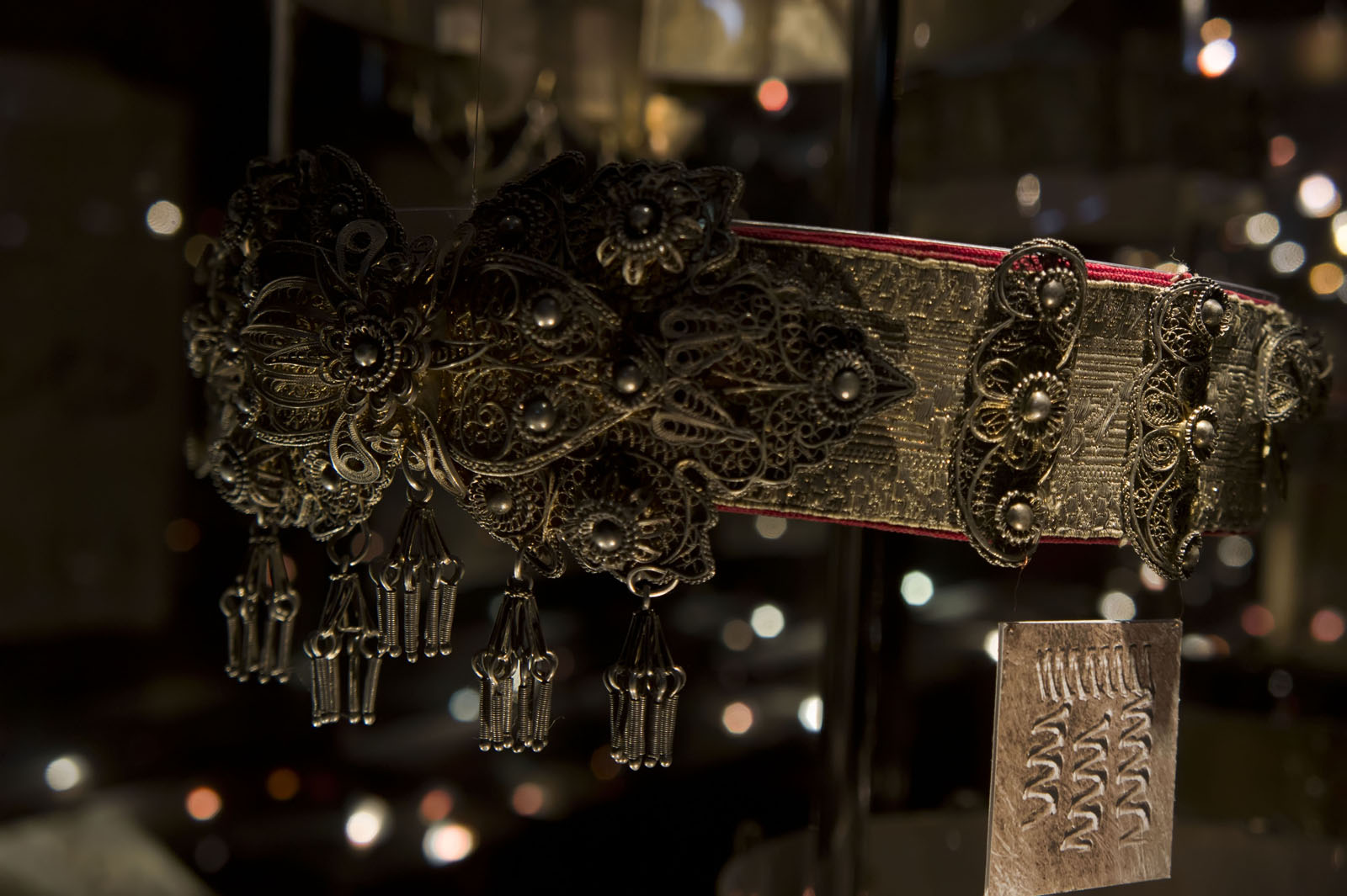 Мастер неизвестенОна включает крымскотатарские, армянские, крымчакские женские пояса, навершия на фес, нагрудные украшения конца XIX нач. XX вв. Эти предметы сделаны из имеющих значительную материальную ценность драгметаллов и представляют собой настоящие произведения искусства, ранее практически не экспонировавшиеся. Они потрясают изяществом исполнения, своеобразием орнаментальных мотивов. На выставке есть пояса, представляющие промысел, которому более 1000 лет — кубачинские. Наряду с ювелирными изделиями демонстрируется художественный текстиль, украшенный вышивкой с использованием золотой и серебряной нитей.