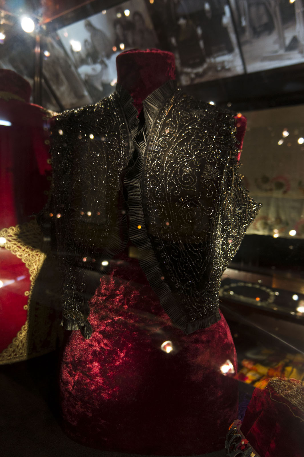 бархат, шелк, золотное шитьеЗдесь же можно увидеть коралловое намисто, медный дукач и пр.