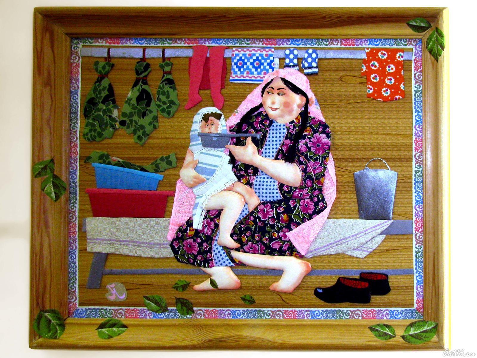 Фото №54352. После бани. 2006Объемная аппликация, груньованный текстиль; Собственность автора