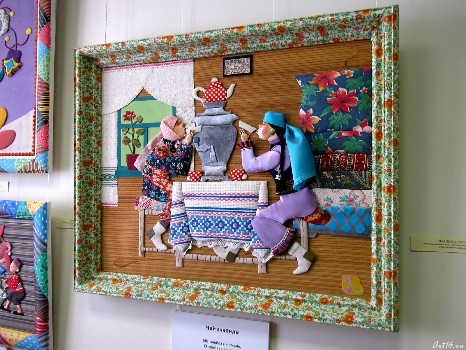 Фото №54418. Чаепитие. 2003Объемная аппликация, груньованный текстиль; Собственность автора