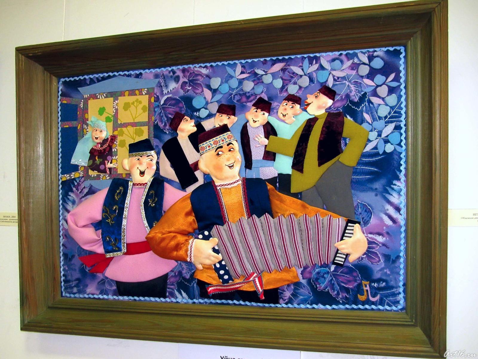 Фото №54580. Играй гармонь. 2003Объемная аппликация, грунтованный текстиль; собственность автора