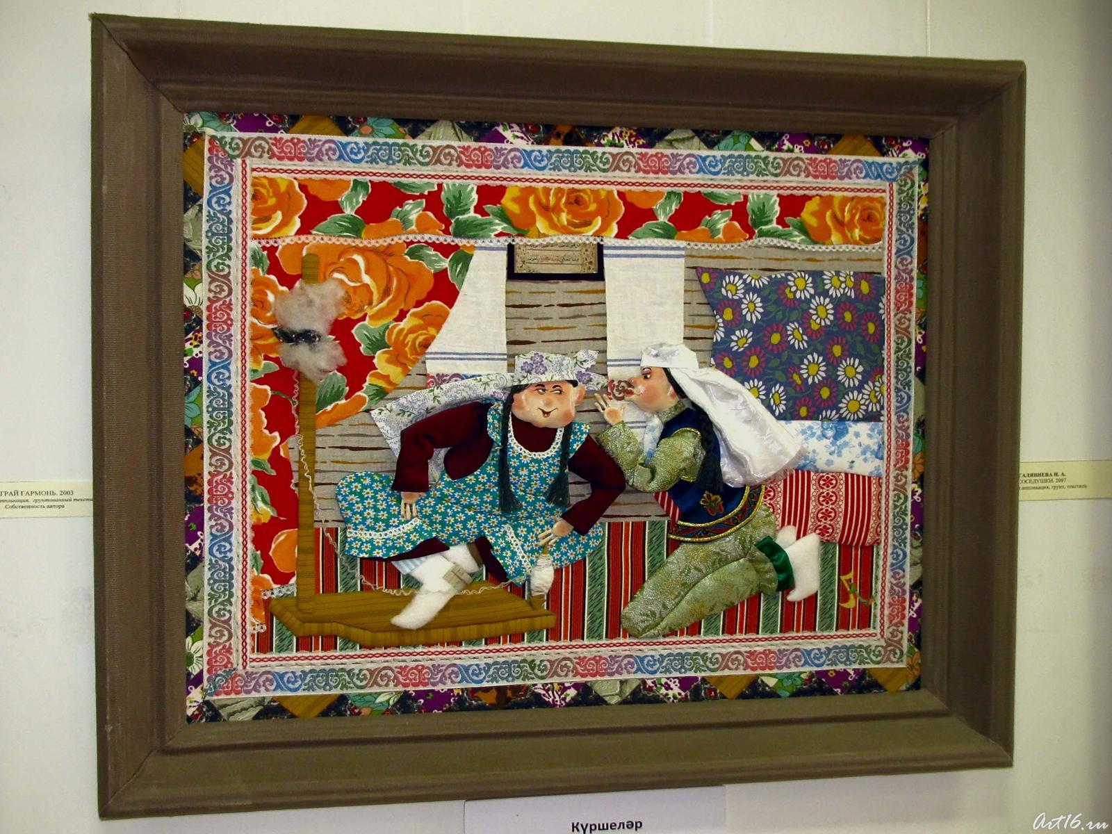 Национальный колорит присущ работам Н. Галявиевой. Наиля Аминовна виртуозно владеет орнаментом и палитрой красок национального костюма. Любое декоративно-прикладное изделие Галявиевой это, прежде всего сюжет, чаще всего наполненный добрым юмором. И это подкупает. На выставке представлено 140 работ художницы, среди которых 60 художественных панно, выполненных с использованием нескольких технологий: объемной аппликации, шитья, и малой пластики. В экспозиции выставки есть, куклы, графические работы художницы и акварель.
