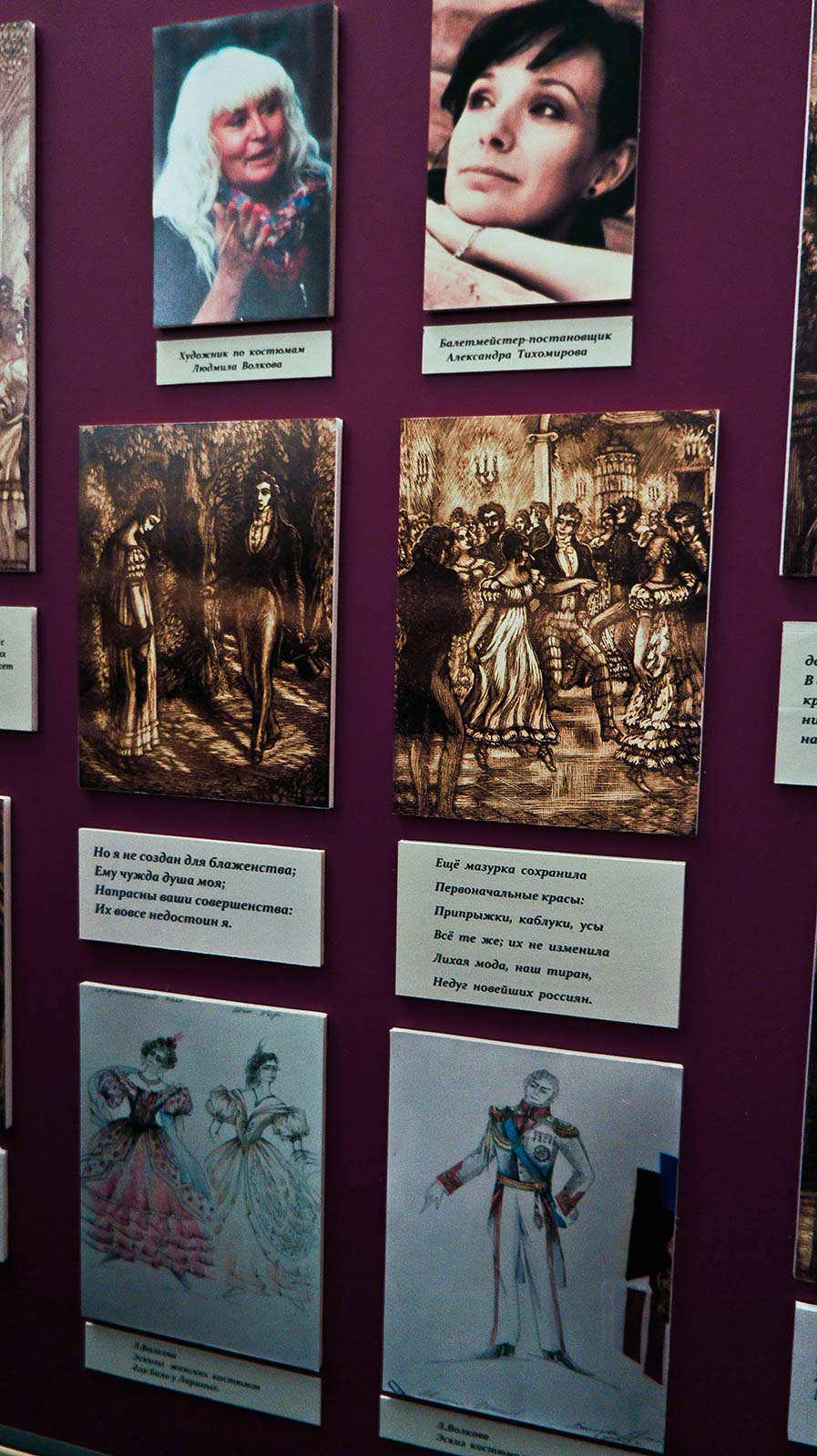 Стенд, повествующий о создании костюмов к опере "Евгений Онегин"