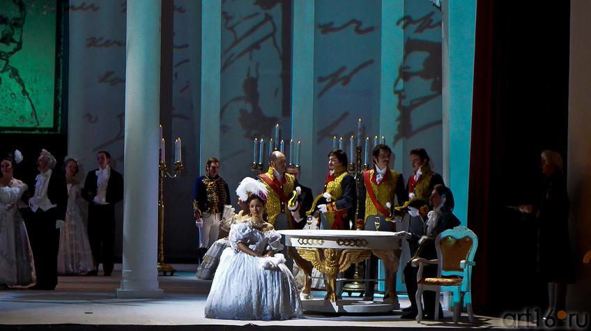 «Вот так сюрприз!..» — хор гостей, ротный, Онегин, Ленский;XXX Международный оперный фестиваль им. Ф.И.Шаляпина, ТАГТОиБ им.М.Джалиля, Казань, Опера П.И.Чайковского \"Евгений Онегин\", музыкальный руководитель и дирижер премьерного спектакля Михаил Плетнев; режиссер-постановщик - Михаил Панджавидзе.