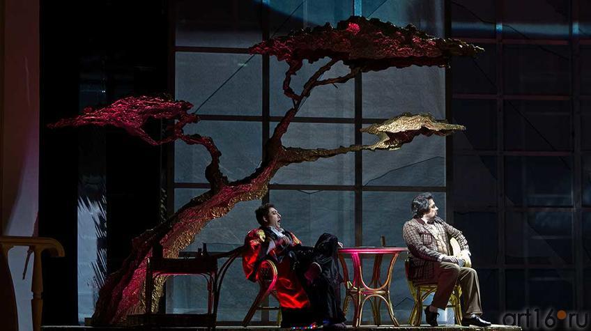 Пинкертон, Дмитрий Полкопин; Шарплес, Андрей Гргорьев;Американский лейтенант морского флота Пинкертон излагает свои легкомысленные взгляды на жизнь, в частности, на брак с японкой американскому консулу Шарплесу;Опера ДЖ. Пуччини \"Мадам Баттерфляй\", 05.02.2012, ТГАТОиБ им. М. Джалиля.