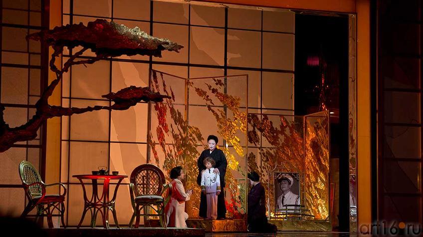 Маленький сын Чио-Чио-сан, Милан Салахов;Чио-Чио-сан, Сишенг И;Шарплес, Андрей Гргорьев;Сузуки, Зоя Церерина.Опера ДЖ. Пуччини \"Мадам Баттерфляй\", 05.02.2012, ТГАТОиБ им. М. Джалиля.