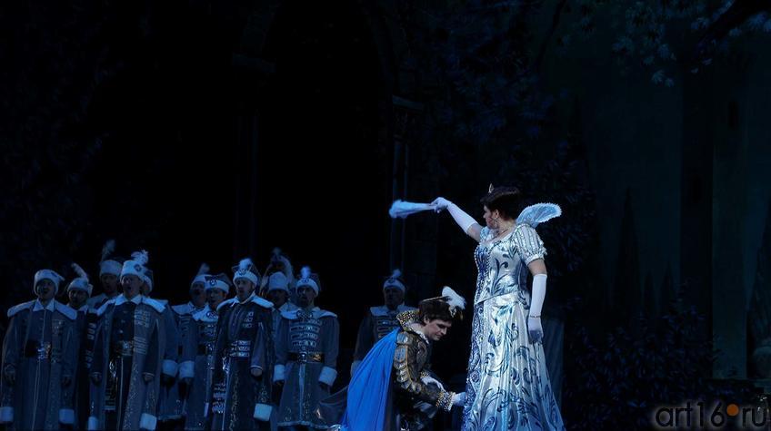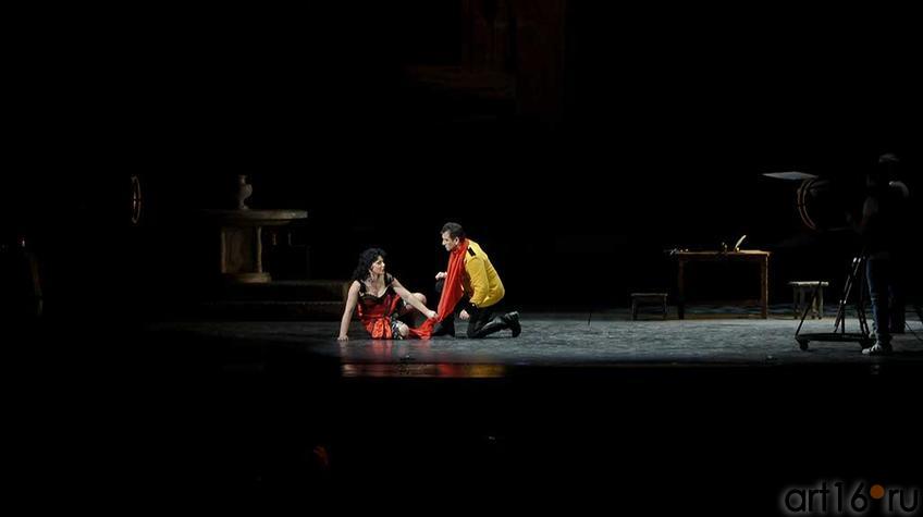 Ты ранишь сердце мне, жестокая Марина; от слов твоих могильный хлад на душу веет. Видишь, я у ног твоих, у ног твоих молю тебя: не отвергай любви моей безумной! Дуэт «О царевич, умоляю» Марина - Ирина Макарова; Самозванец - Дмитрий Кузьмин (тенор)Опера \"Борис Годунов\", Модест Мусоргский;XXX Международный фестиваль им. Ф.И.Шаляпина, 13.02.2012 ТАГТОиБ им. М.Джалиля