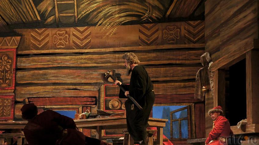 Опера \"Борис Годунов\", Модест Мусоргский;XXX Международный фестиваль им. Ф.И.Шаляпина, 13.02.2012 ТАГТОиБ им. М.Джалиля;Пристава бросаются на Варлаама. Увидев, что дело принимает скверный оборот, старец требует дать ему самому прочитать Указ;Варлаам - Михаил Светлов-Крутиков