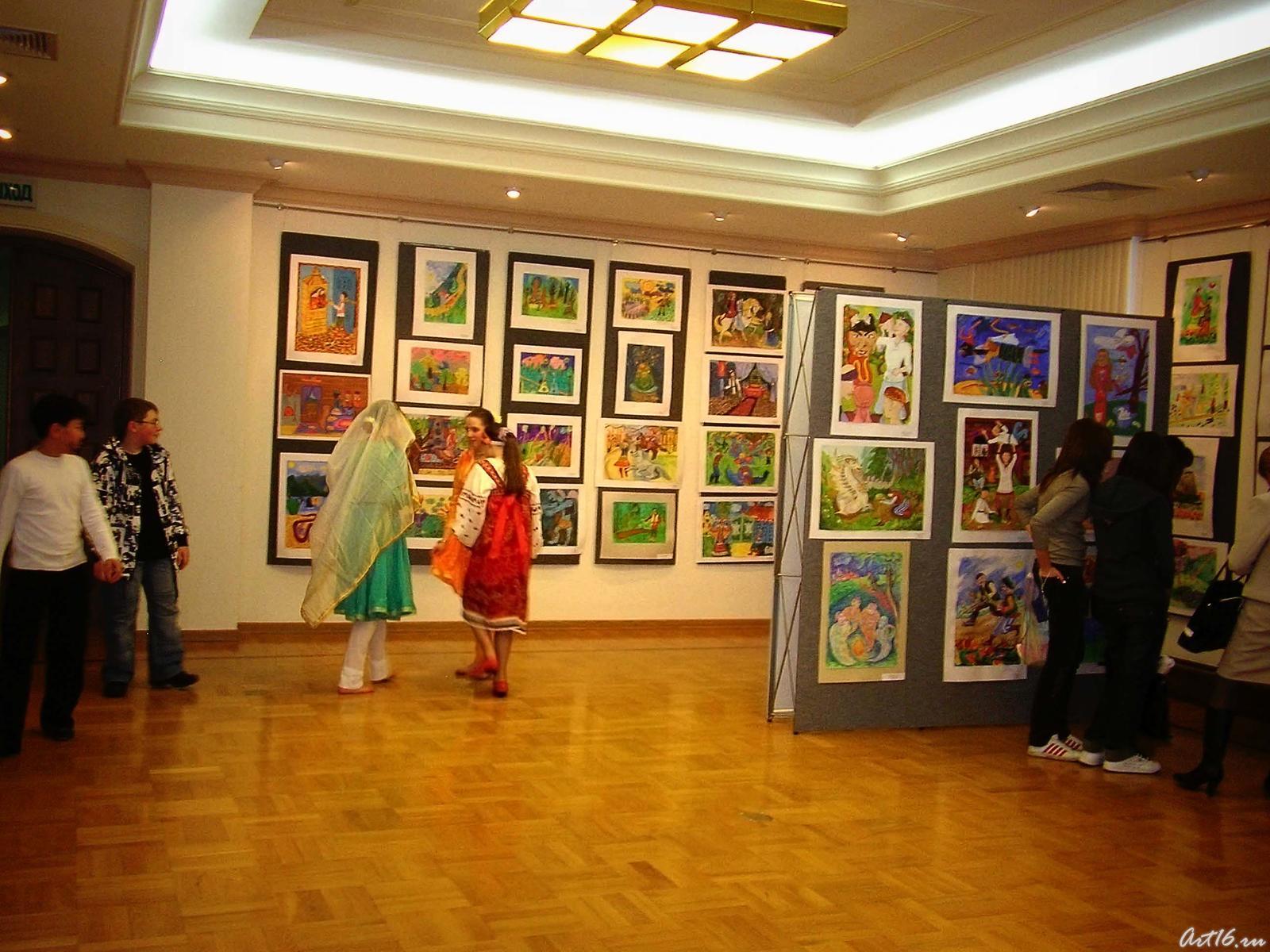 На вернисаж из Москвы в Казань приехали дети и родители из состава семейных групп Государственного музея изобразительных искусств имени А.С.Пушкина. Приглашение выставки в Казань было подхвачено сотнями детей и педагогов РТ. Работы своих воспитанников представили художественные школы г. Казани: ДШХ№1, ДШХ№2, ДШХ№3, ДШХ№6, Д ШХ№7, ДМШ №2, ДШИ №10 пос. Юдино, ГДДТ им. А. Алиша. В концерте приняли участие: лауреат телевизионного фестиваля «Созвездие» Саида Мухаметзянова, педагог Л. Иевлева; студентки 1-го курса отделения народного танца казанского хореографического училища, педагог В. Закамская; учащиеся ССМШ при КГК им. Назиба Жиганова Фунтикова Аня (ф-но), педагог Н. Хакимова; учащиеся ССМШ при КГК им. Назиба Жиганова Спиридонова Даша (скрипка) и Ким Бо Хян (ф-но), педагог А. Михайлова; ансамбль кураистов, учащиеся 2-го класса гимназии №6. А также школьники г. Москвы (центра эстетического воспитания детей и юношества «Мусейон» Государственного музея изобразительных искусств имени А.С.Пушкина). Праздничный концерт в день открытия выставки был колоритным и красочным.