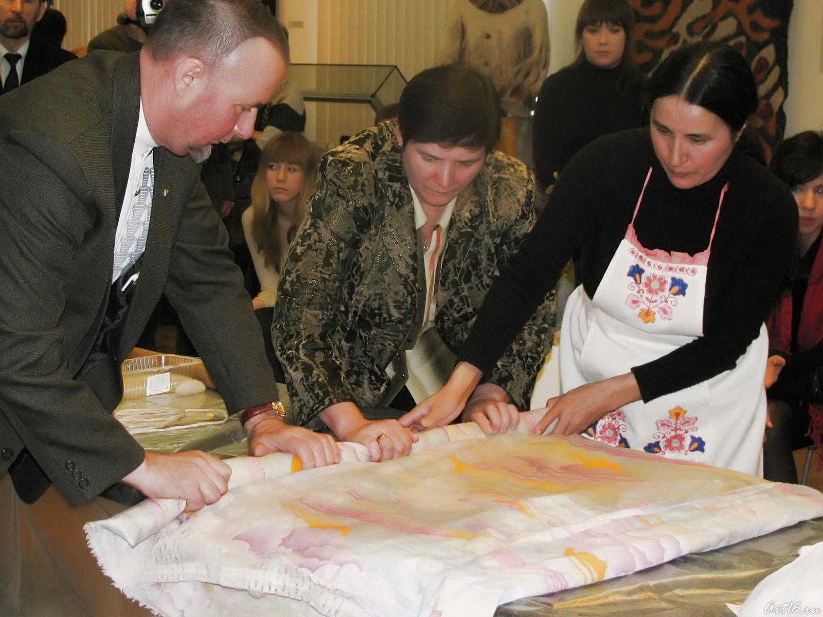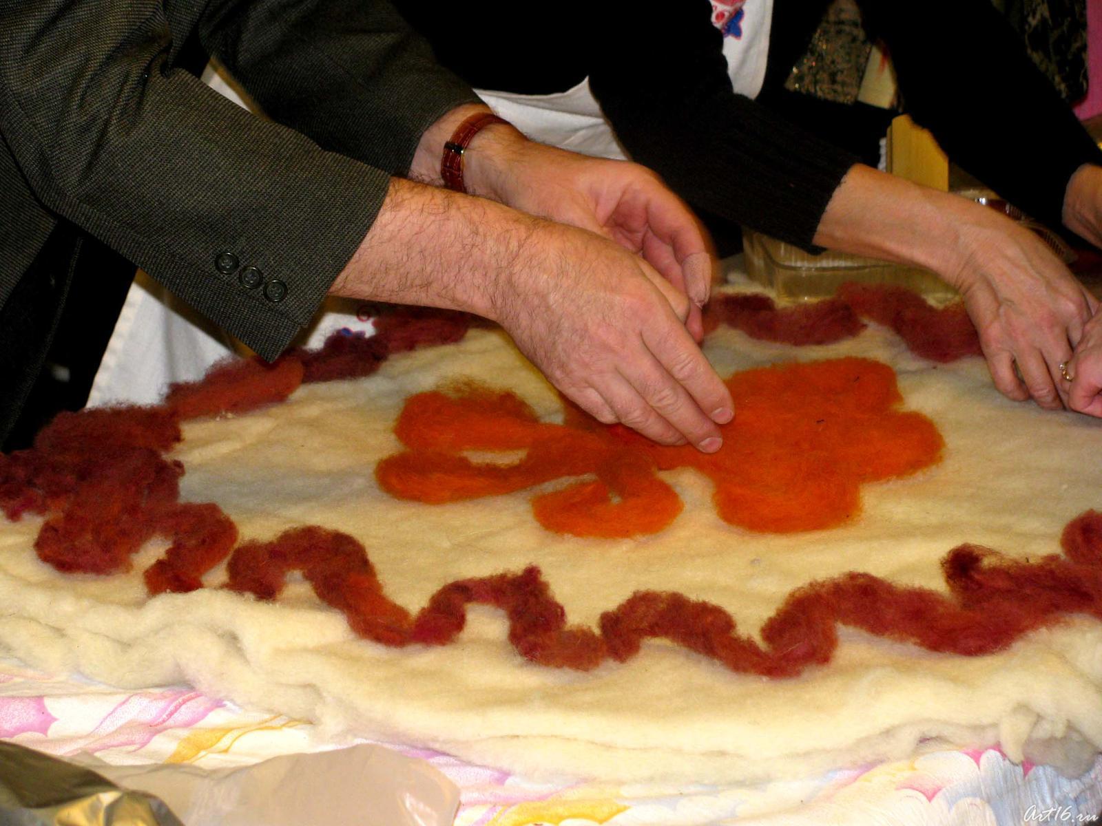 Желающие имели возможность приобщения к процессу валяния. Мастера, рассказывая о тех или иных приёмах, наглядно демонстрировали их.
