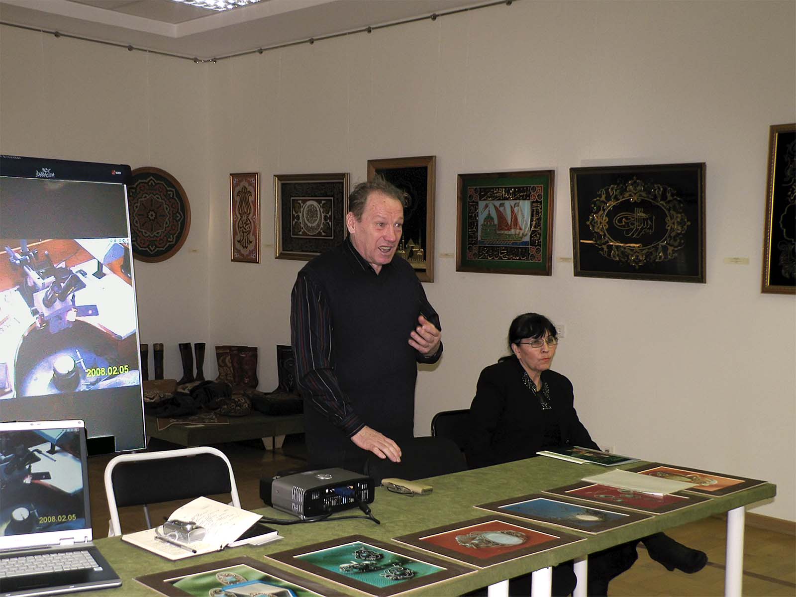 С 14.00 до 16.00 присутствующие прослушали лекцию ювелира Р. Мухаметшина «Татарское ювелирное искусство». Затем перед собравшимися выступил Е. Бакакин (ювелир). Он поделился «Секретами ювелирного мастерства» с будущими ювелирами.