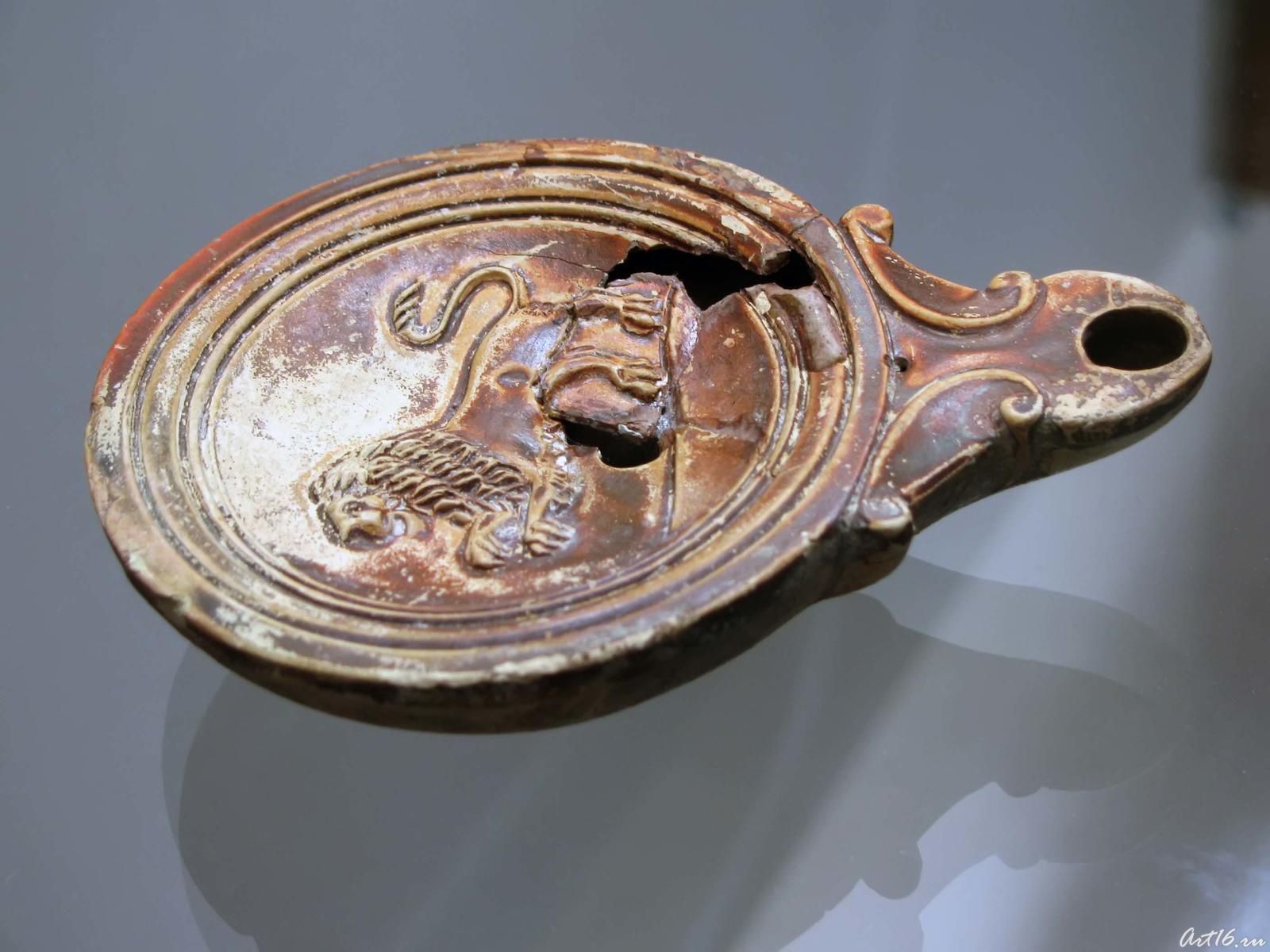 Фото №35444. Светильник римского типа. на щитке:Лев в прыжке. На плечиках: рельефные кольцаглина