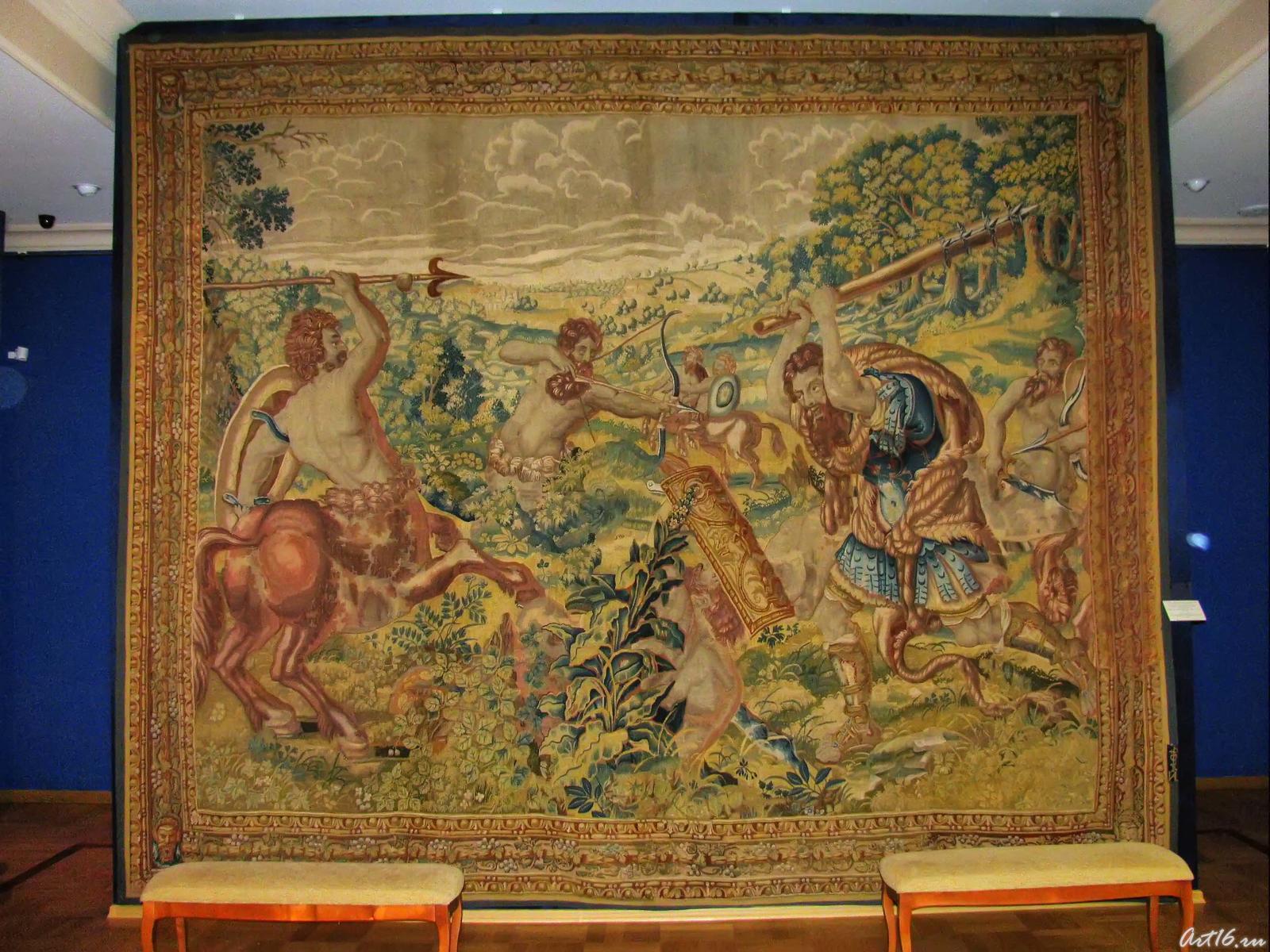 Фото №35489. Шпалера «Битва Геракла с Кентаврами» из серии История Геракла«»шерсть, шелк, 7-8 нити основы на 1 см. 425х346 см