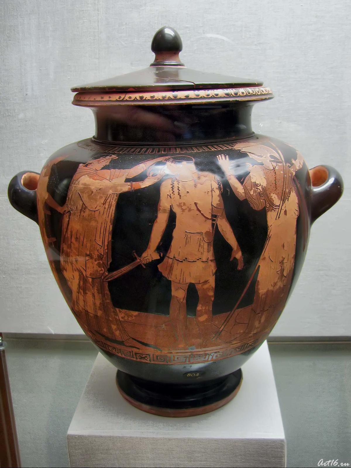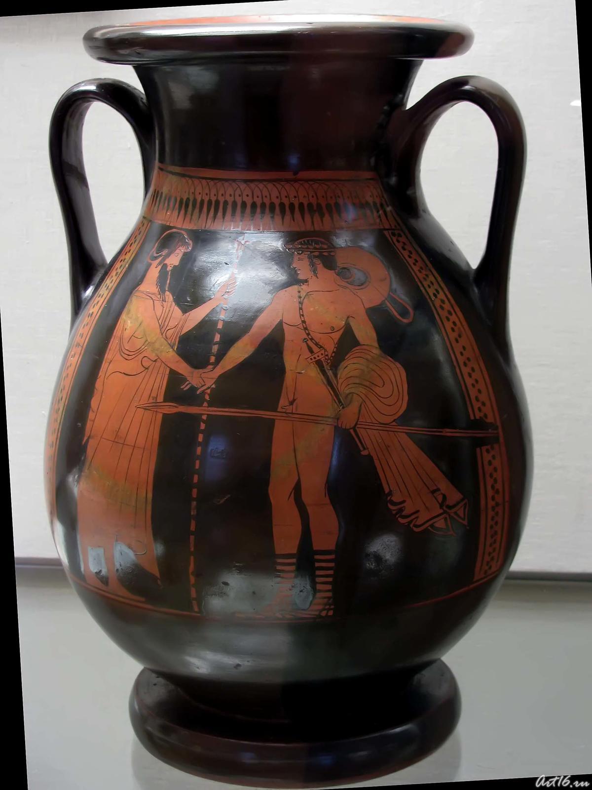 Фото №35534. Кратер краснофигурный: Воин и Амазонкаглина
