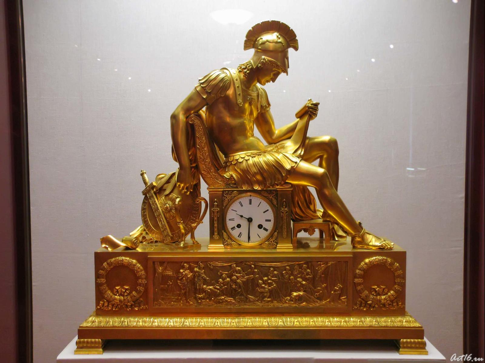 Фото №35594. Каминные часы «Бдение Александра Македонского»бронза, литье, чеканка, золочение