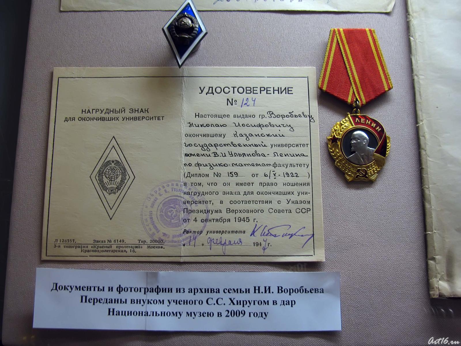 В Национальном музее РТ организована выставка «Учитель и ученик», экспозиция которой повествует об этих двух крупнейших ученых. На выставке представлены архивные материалы, переданные в прошлом году музею, родственниками Николая Иосифовича Воробьева.