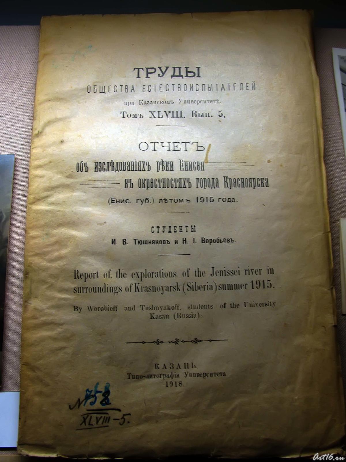 Фото №39869. Труды Общества естествоиспытателей, отчет студентов Воробьева, Тюшнякова. 1918г.выставка «Учитель и ученик», посвященная крупнейшим ученым Н.И. Воробьёву и Е.П. Бусыгину.