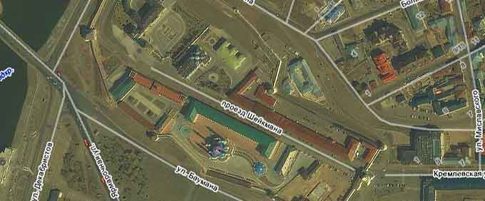 В центре карты, которую Вы видите на экране, расположен Казанский Кремль.