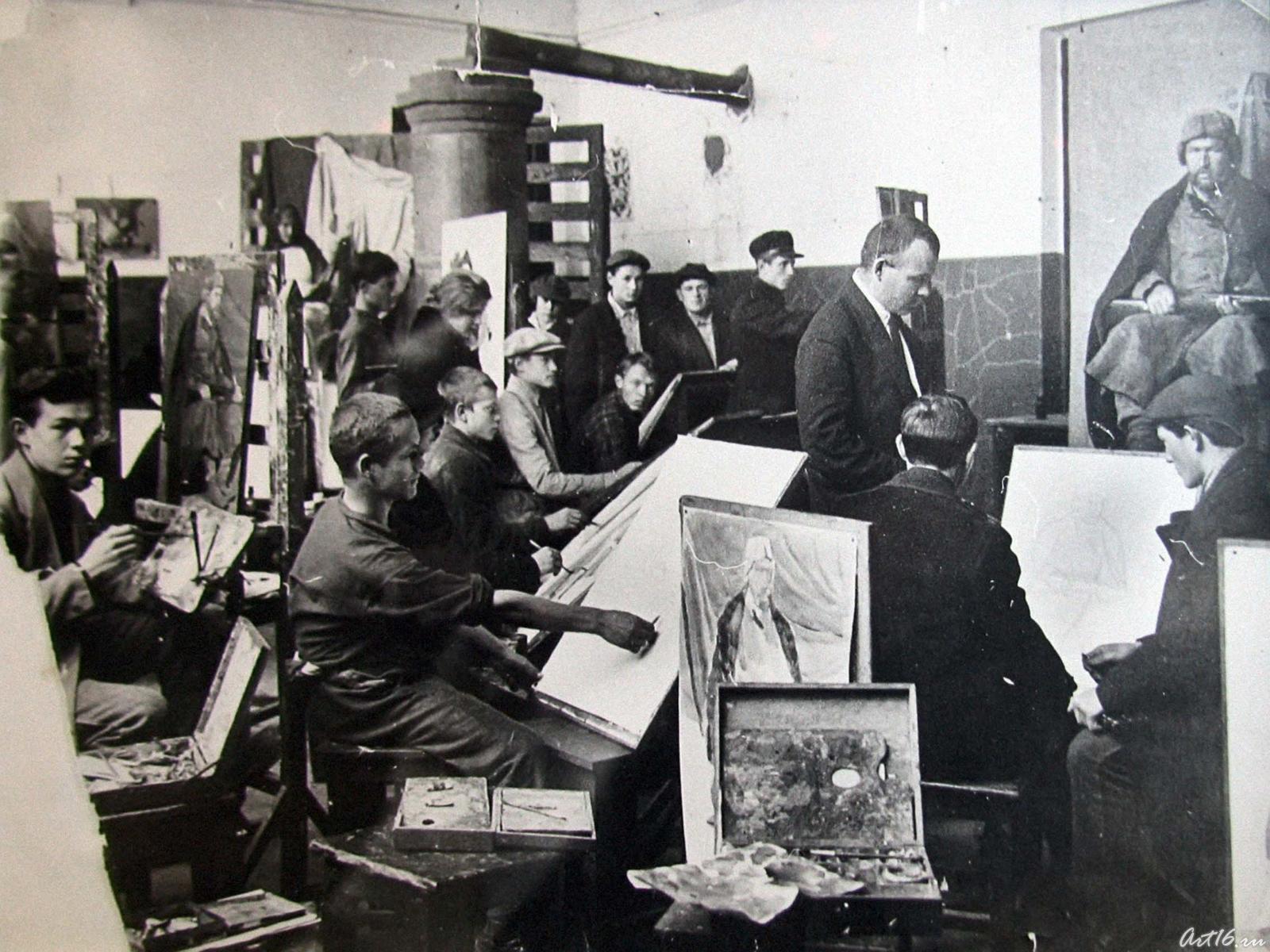 Фото №43521. Б, Урманче с учениками. Казанская художественная школа