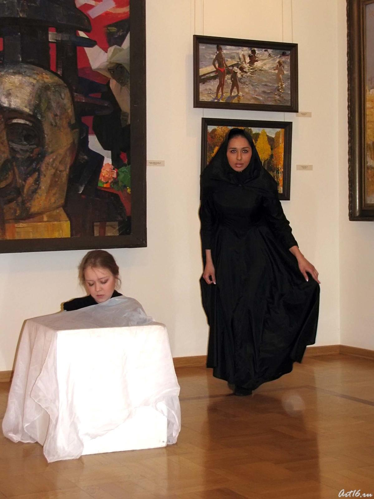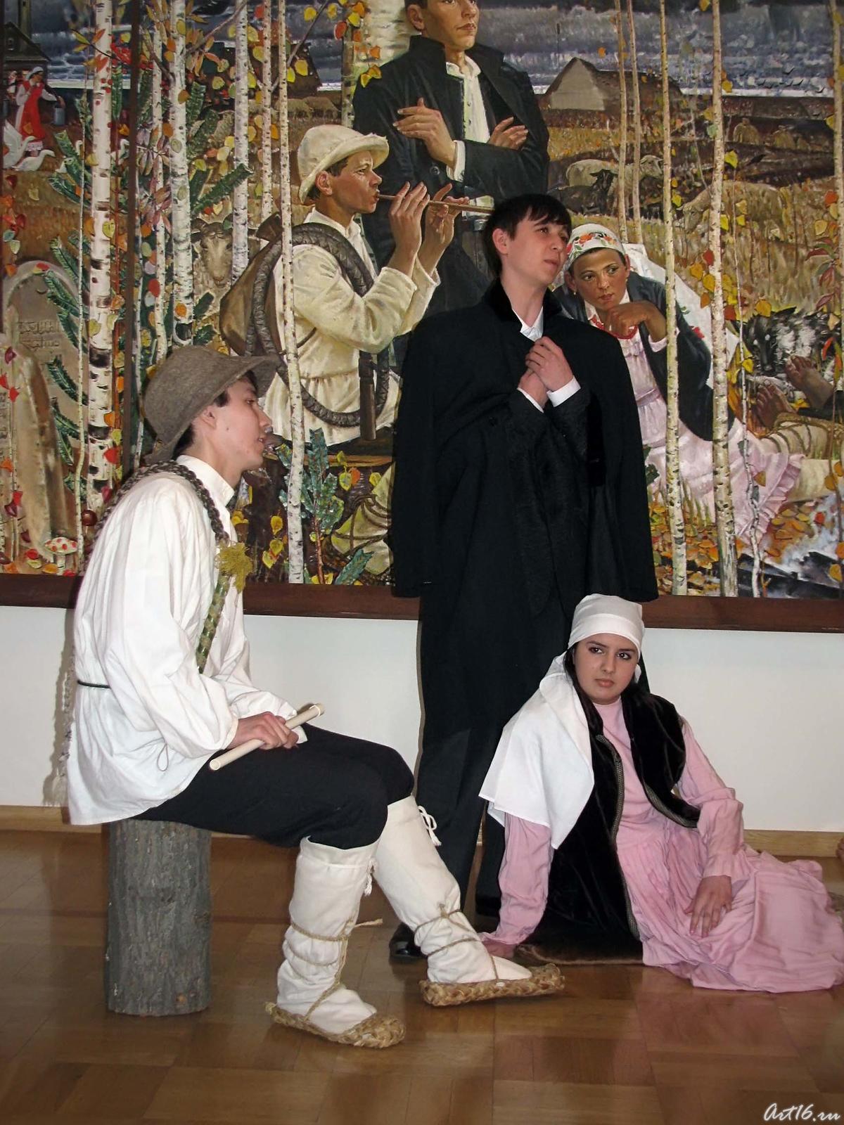 Своеобразным симбиозом театрального, художественного и музыкального творчества стало празднование Международного дня театра в Национальной художественной галерее «Хазинэ».«Место, где смотрят» - буквальный перевод с древнегреческого слова «театр», с театральных подмостков успешно было перенесено в картинную галерею. Студенты казанского театрального училища «оживили» картинывыдающегося татарского художника, общественного деятеля, народного художника СССР, действительного члена Российской академии художеств, Хариса АбдрахмановичаЯкупова. Его картины: «Памяти Тукая», «Красавицы КамАЗа», «Живые и мертвые» словно по мановению «волшебной палочки», заговорили. Идея «оживления картин» принадлежит Дамиру Сабировичу Фасееву, экскурсоводу, научному сотруднику НХГ «Хазинэ». И до него существовал опыт «оживления» картин через позирование актеров, но благодаря Д.Фасееву, картины «заговорили». Игра актеров позволила ярче представить эпоху, в которой жили герои картин Хариса Абдрахмановича Якупова. Идея, на мой взгляд, удачная. За популяризацией художественного искусства посредством театрального великое будущее.