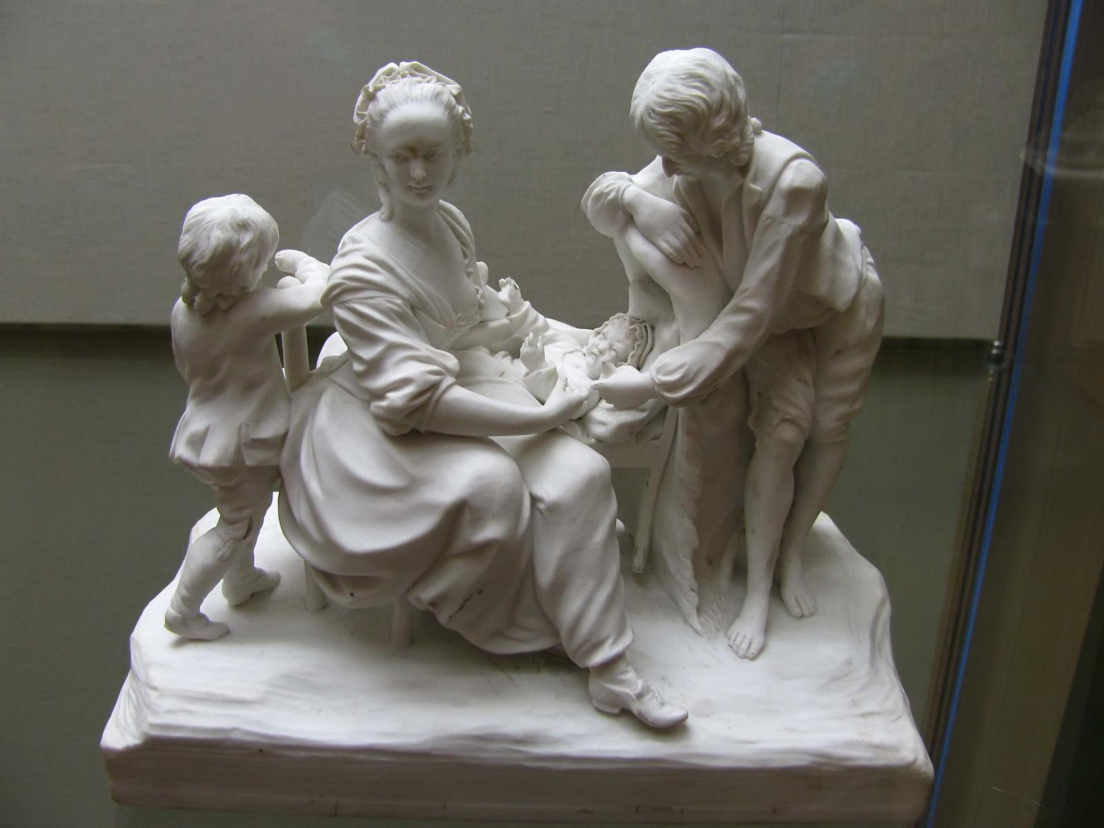 На смену фаянсу приходит фарфор. Настоящее освоение этого уникального материала началось в XVIII веке, сначала в Венсене, а затем в Севре после перевода туда мануфактуры. Из фарфора создаются целые сервизы и отдельные предметы. В Севре налаживается производство фарфоровой пластики - небольших скульптурок, которые исполняются из неглазурованной массы - бисквита, по моделям лучших художников XVIII столетия - Л.-С. Буазо, Э.-М. Фальконе и др.