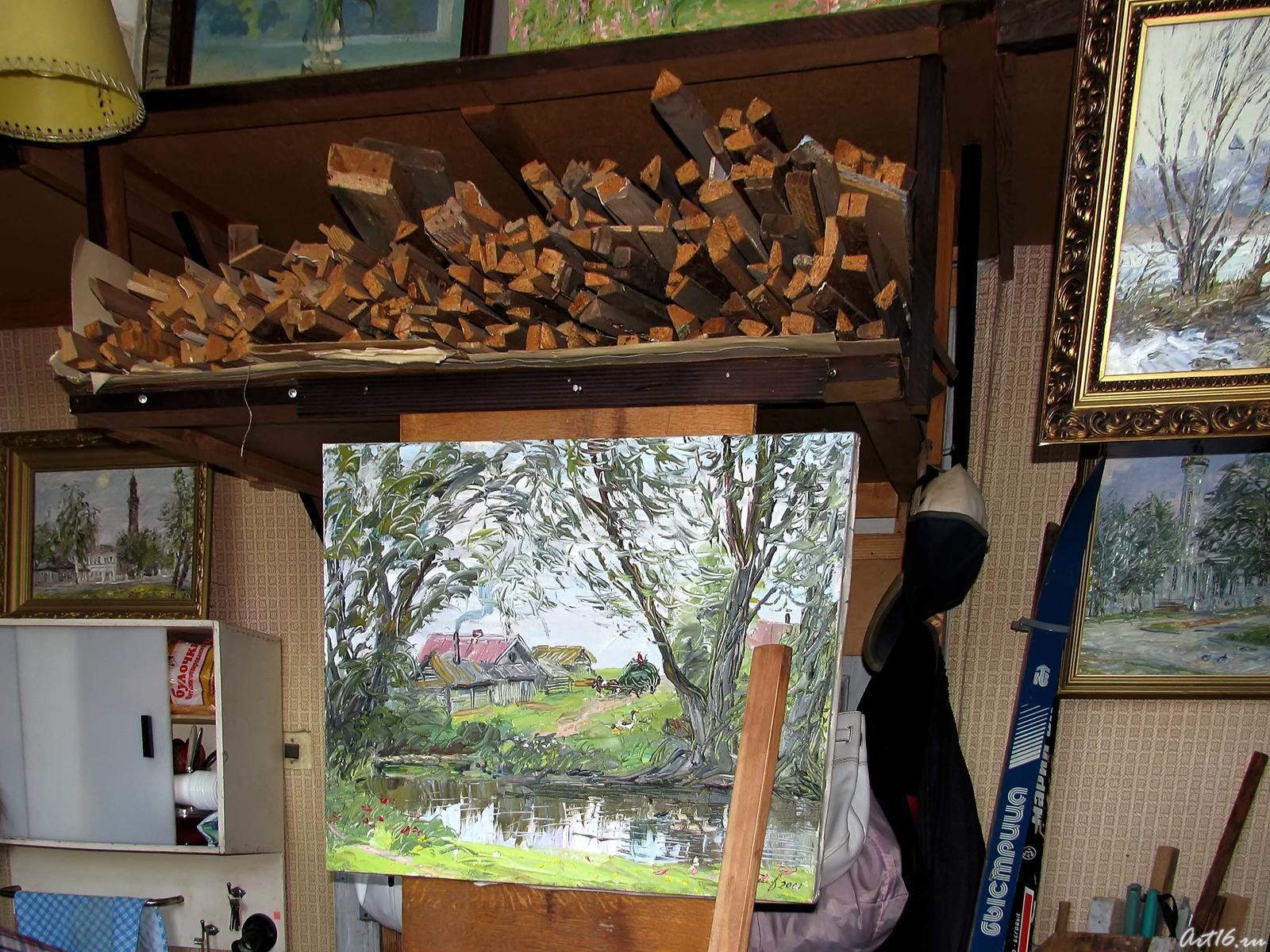 Фото №57363. Картина Р.Гусманова (масляные краски, мастихин)Мастер-класс проходил в мастерской Рашида Аскаровича Гусманова, повсюду развешаны его картины. Разглядывая их, удивляешься многообразию пейзажей. Присутствует и деревенский, и городской индустриальный пейзаж разных географических широт.