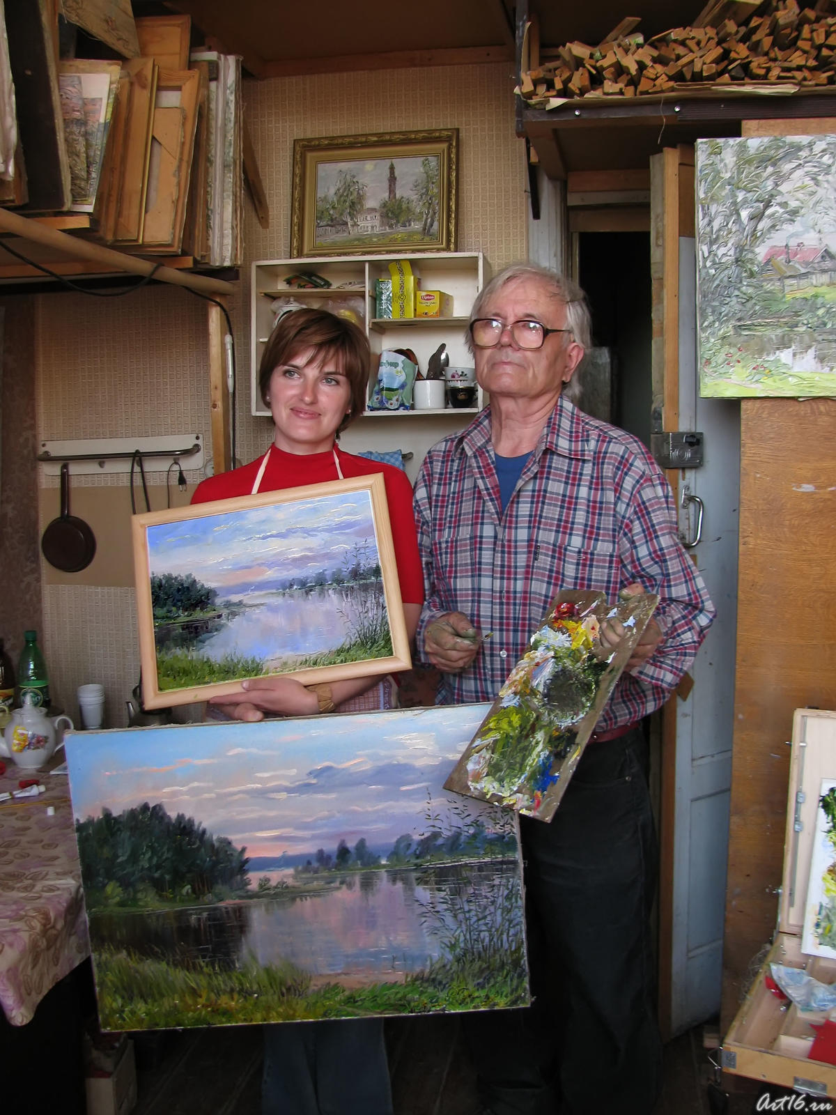 Фото №57477. Учитель и ученица. Поразительное сходствоР. Гусманов (справа)К концу мастер-класса самодеятельные художники уверенно орудовали мастихином, нанося краску на холст короткими и длинными, круговыми и прямыми движениями. Размешивали краску, достигая неповторимых оттенков. И картины, написанные ими с полотна Рашида Гусманова, получились похожими по содержанию, но уникальные по колориту, текстуре. А главное, «художники выходного дня» в очередной раз, соприкасаясь с искусством, получили положительные эмоции, самореализацию через творчество и похвалу художника.