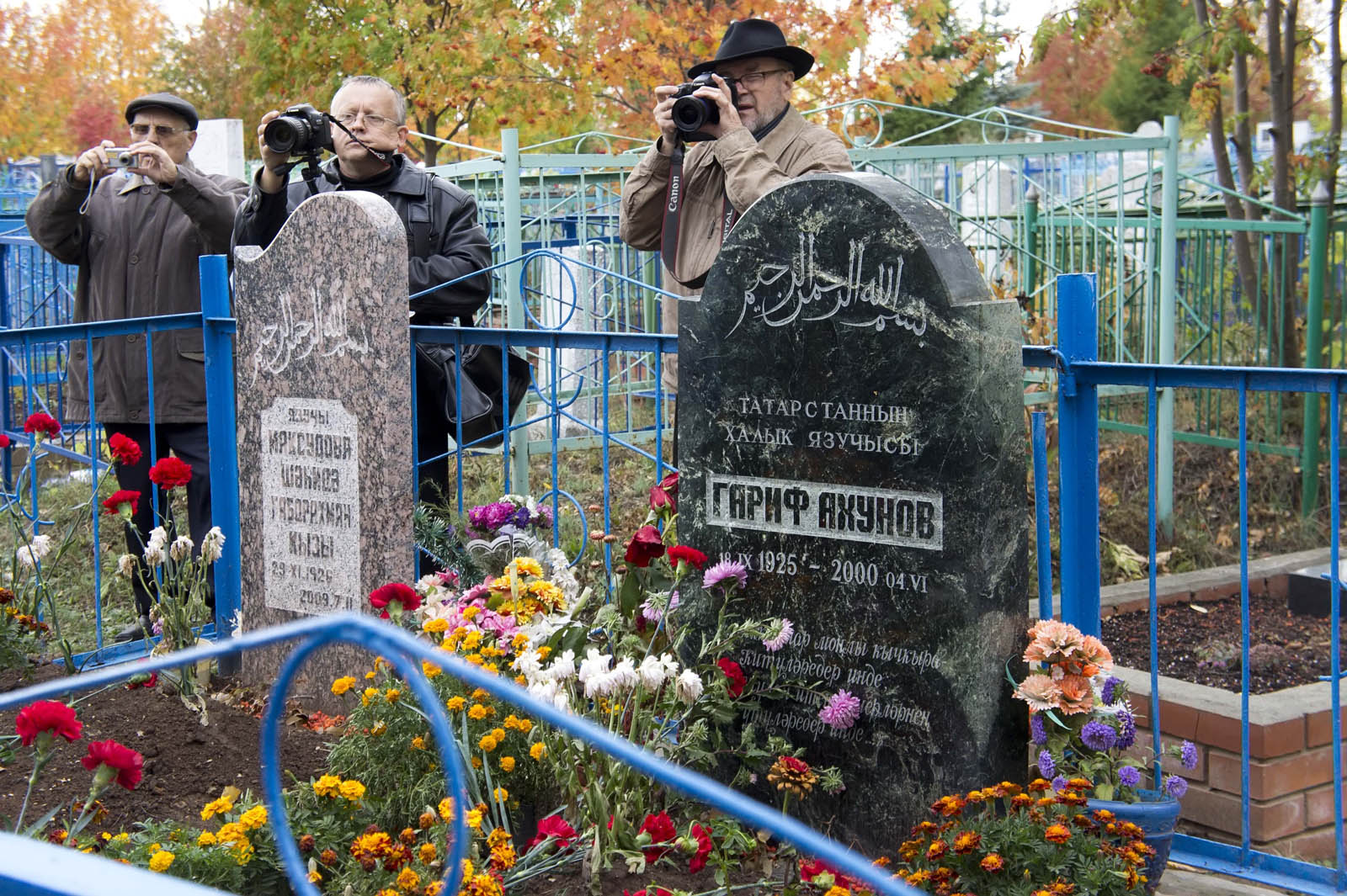 Затем гости Арска посетили могилу Гарифа Ахунова, отдали дань его таланту, возложили цветы на могилу, прочли молитву.