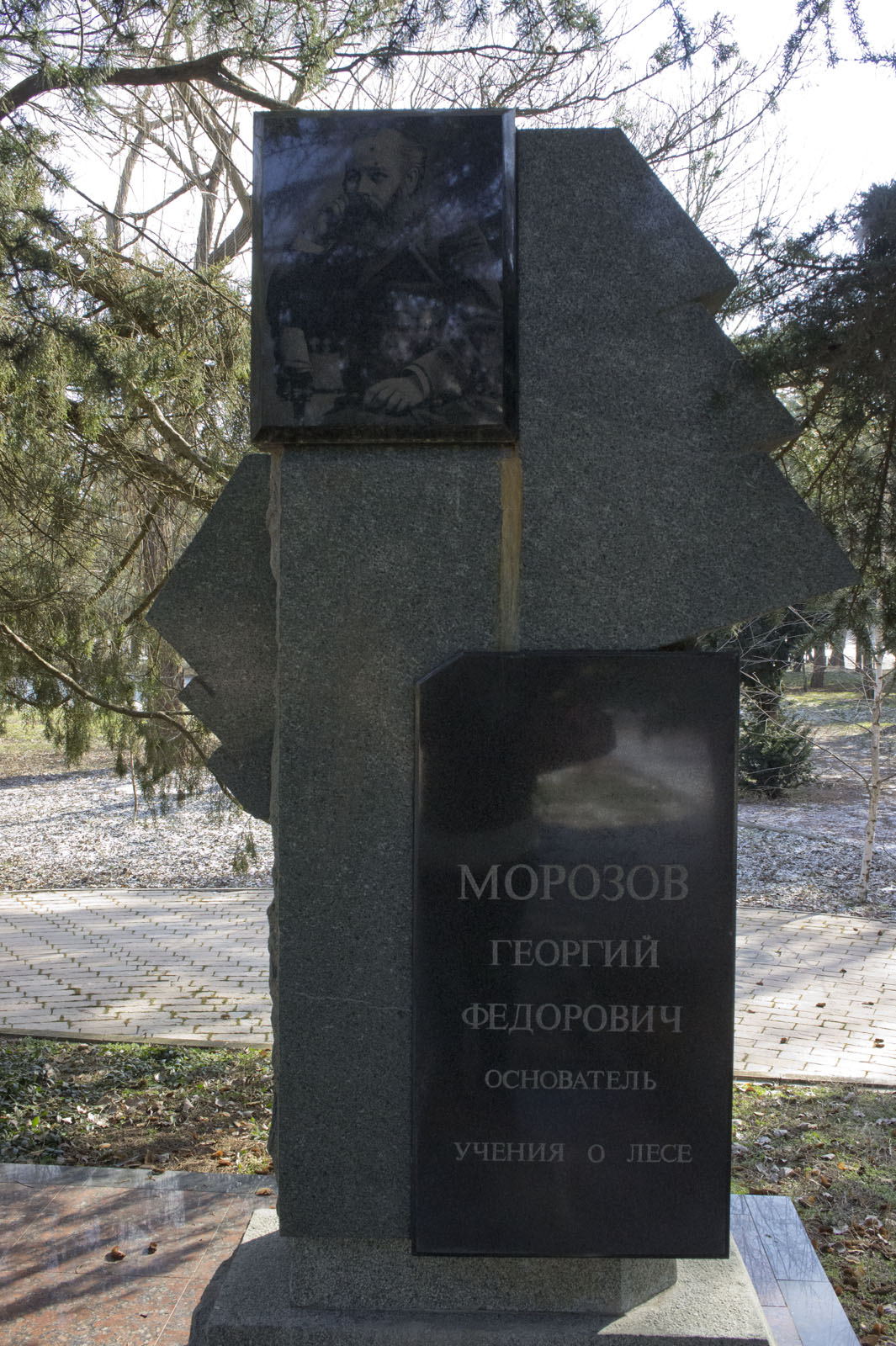 Фото №69831. Памятник Морозову Г.Ф.— основателю учения о лесеСимферополь. Февраль 2011В ночные часы парк находится под охраной и закрыт для посещений: ворота закрываются, с цепи спускаются псы. А охранять там действительно есть что. Парк изобилует редкими растениями. В экспозицию ботанического сада входят: дендрарий, иридарий, розарий, сиренгарий, каскад прудов.